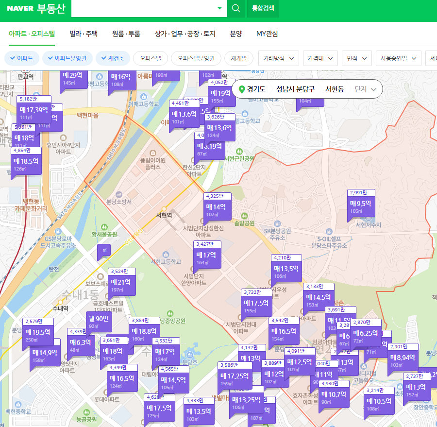 네이버 부동산에 접속을 하면 아래와 같은 화면이 뜹니다.