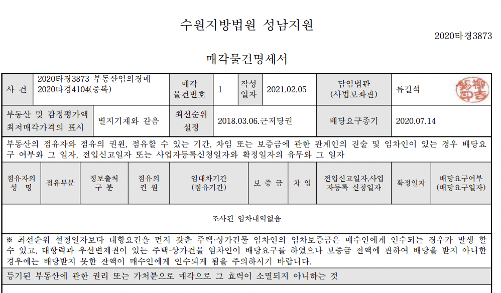 임차인 없음, 인수사항 없음