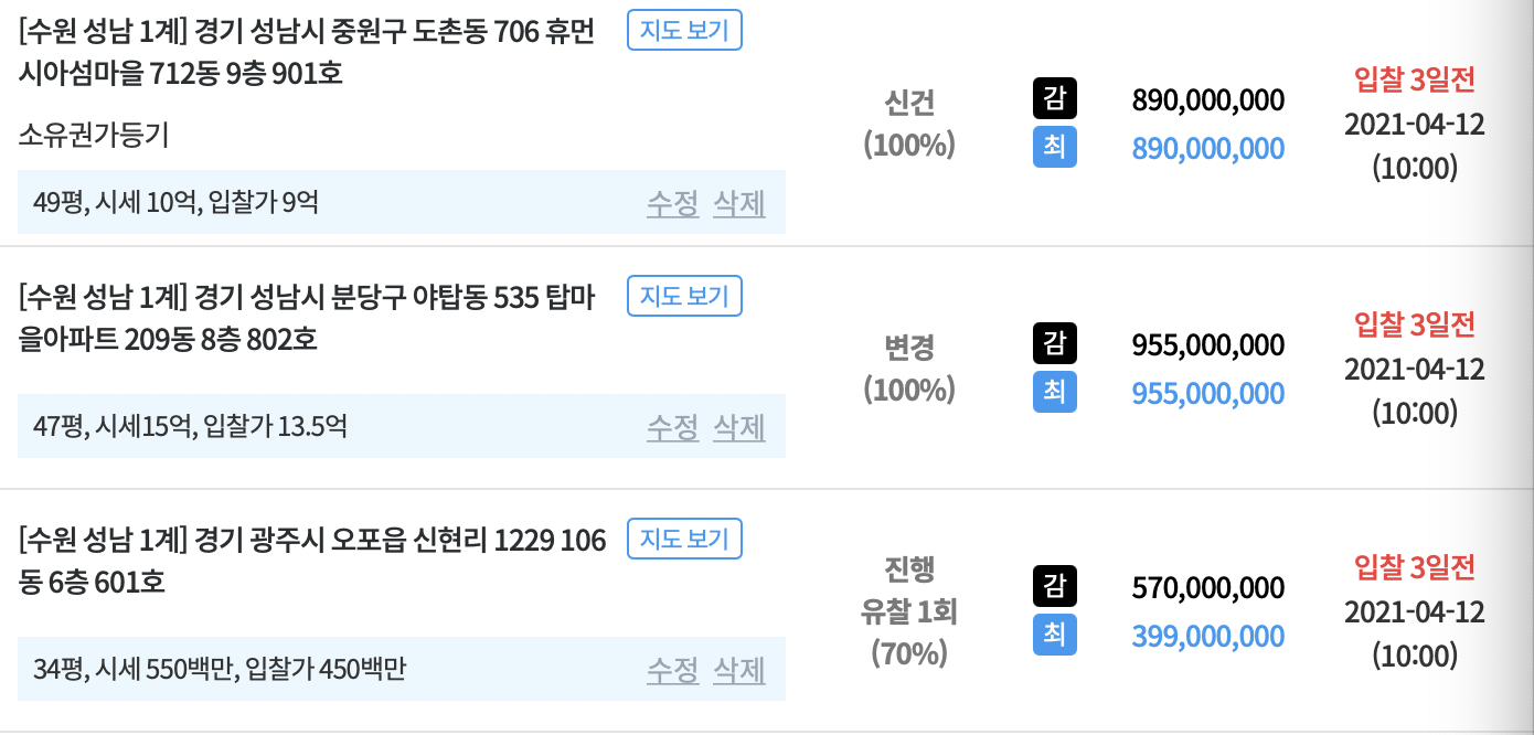 | 4월6일 매각 복기) 경기도 수원 용인 경매 모의 입찰 결과 분석 (0) | 2021.04.07 |