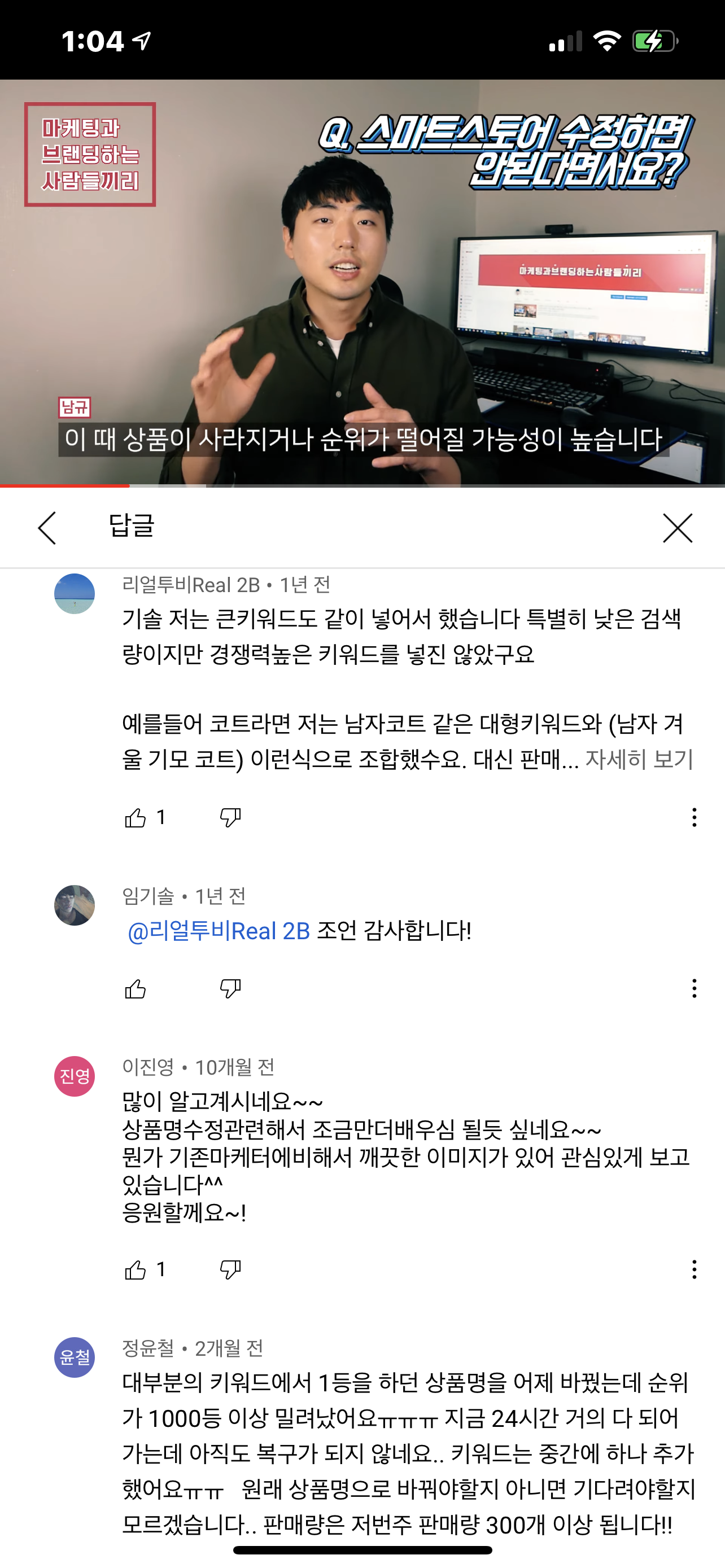 마브사끼 영상의 댓글도 참고하고자 같이 올립니다.