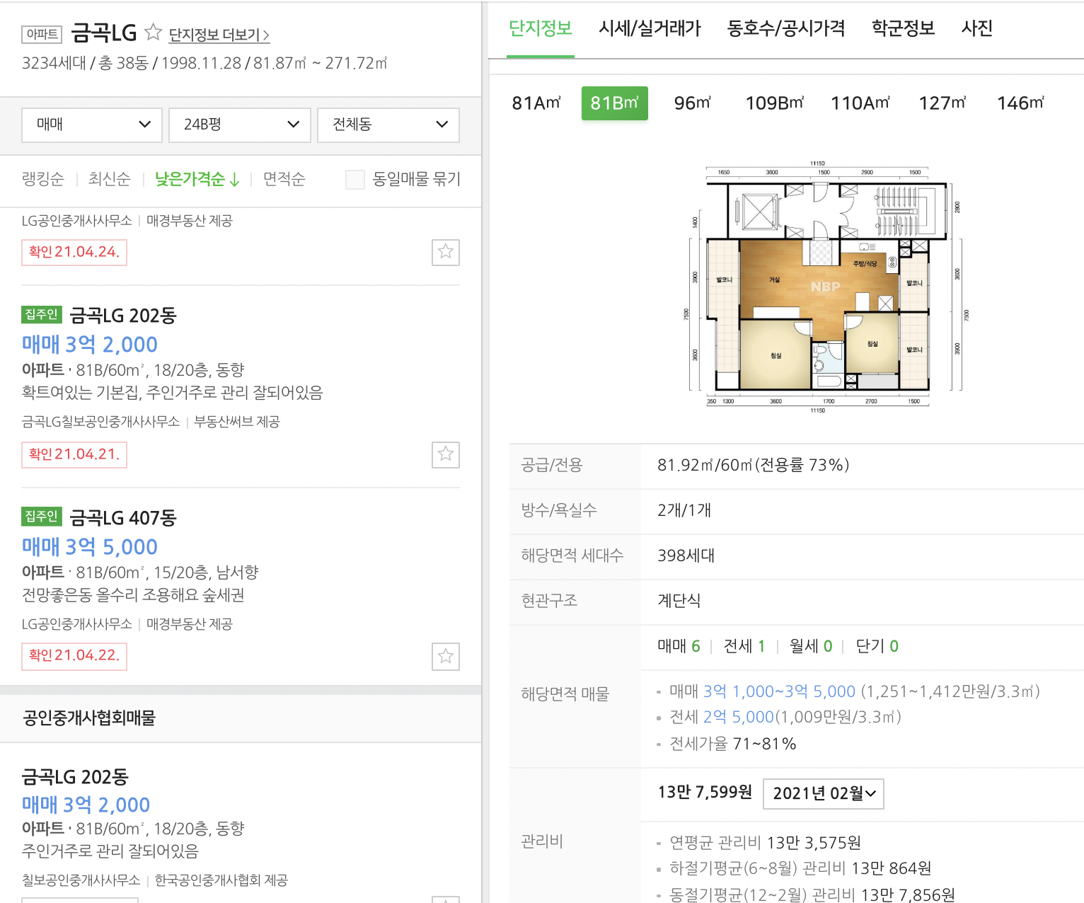 시세 3억 2천 수준으로