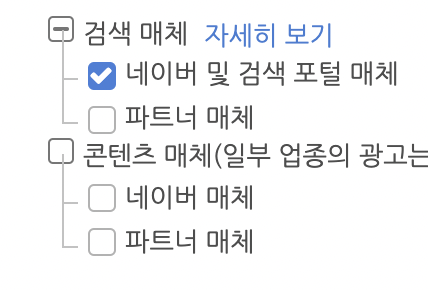 네이버 및 검색 포털 매체만 체크하여 광고하시기 바랍니다.